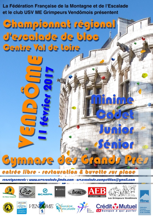 Une compétition regionale de bloc est prévu le samedi 11 Février au gymnase des grands près à Vendôme.